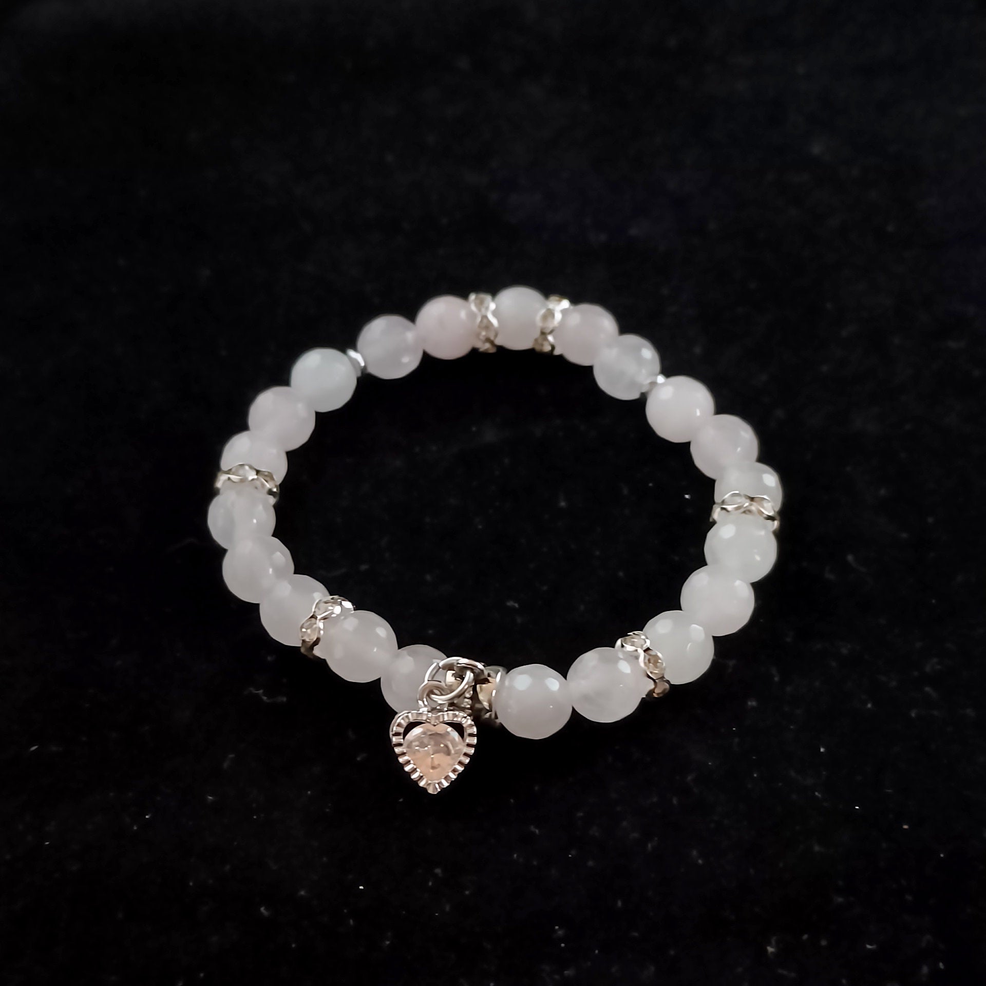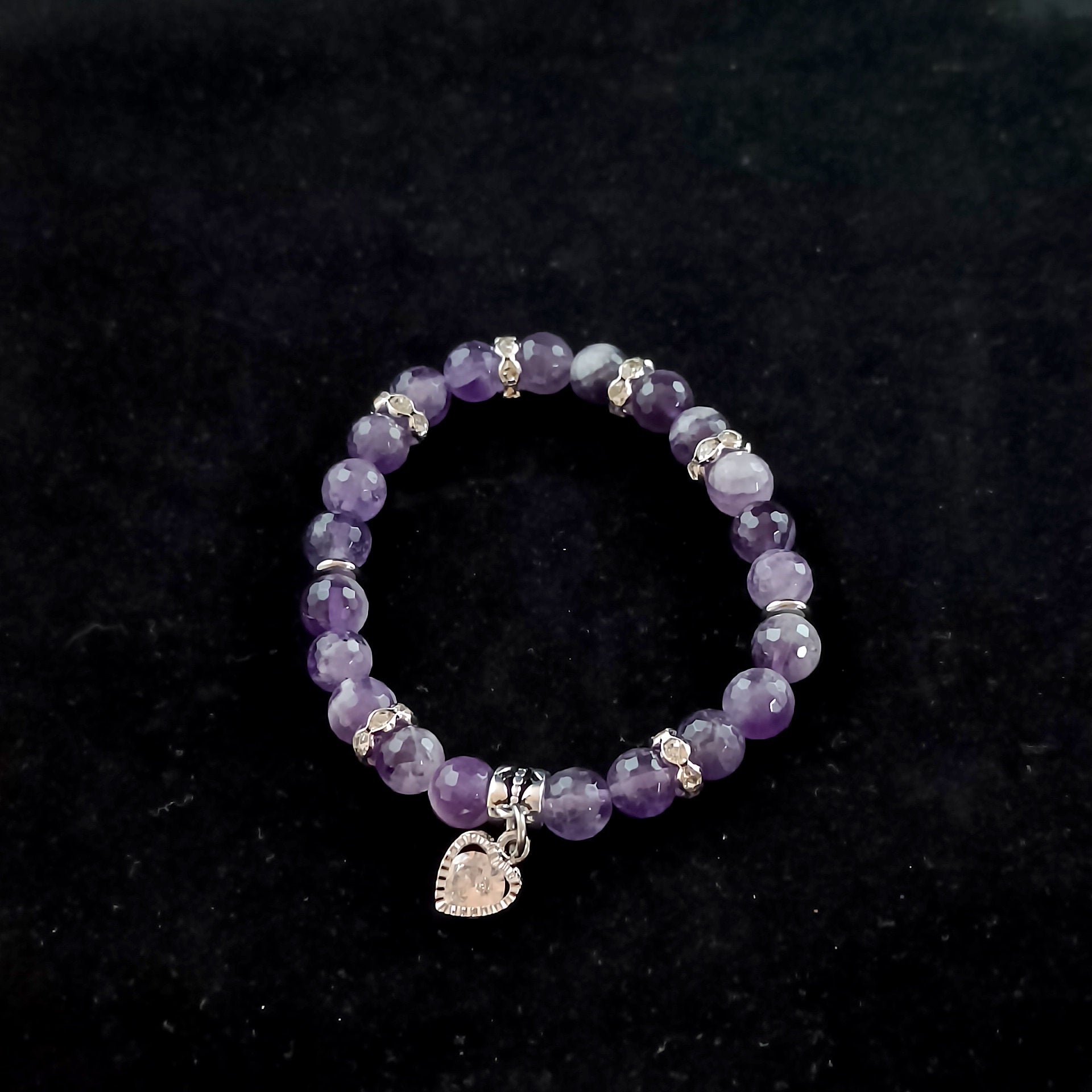 Björt hjarta armbönd með 8mm steinum og hjarta.